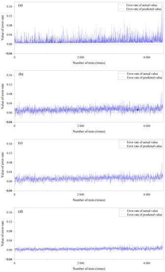 In order to compare the difference between different methods and more obviously reflect the superiority of the prediction method in this paper, the error rate of the prediction results of each methods’ test set after feature selection is compared and analyzed in this paper, and the comparison results of the error rate is shown in Figure 22.