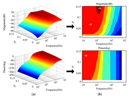 The frequency characteristics of the equivalent control plant EPm(z) with different kp values are shown in Figure 6. It is worth mentioning that the ki value is set to 0.