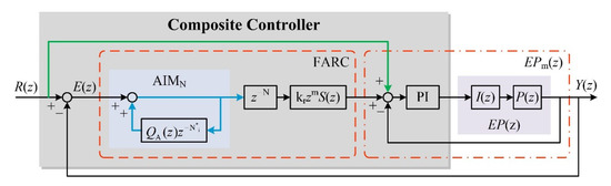 The proposed FARC is located in the forward channel of the PIC. Hence, when the control signal is changed, the dynamic response performance of the current loop controller is selected as another forward channel, and the reference current feedforward channel can be established, which can improve the dynamic response performance of the current loop controller effectively. The proposed composite controller is shown in Figure 10.