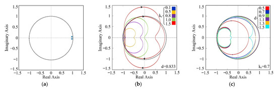 Furthermore, the proposed FARC stabilities with different BLDC motor operation speeds are also analyzed. For instance, the Nyquist diagrams of H(z) with different fractional part d values were studied, as shown in Figure 11c. It is obvious that the loci of H(z) are always located in the unit circle while 0.5 < d < 1.5 and kr = 0.7. Additionally, a certain margin between the root loci and the unit circle boundary can be retained, therefore, the control system can maintain a sufficient stability margin.