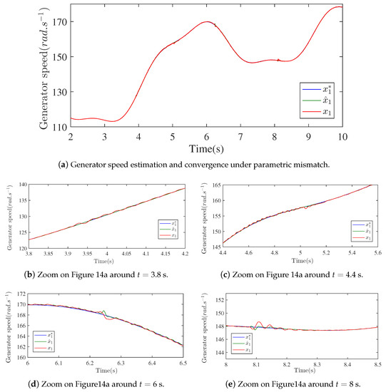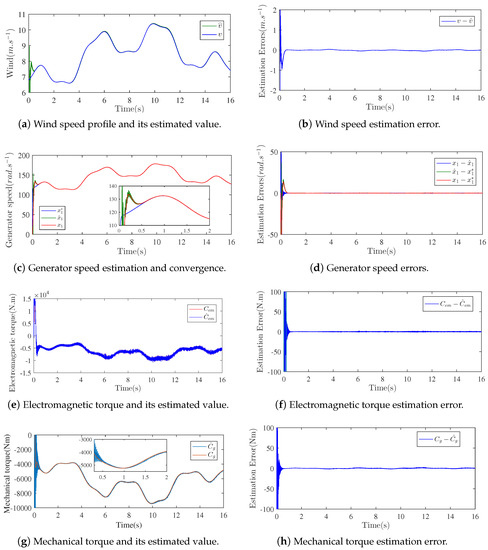 From (14), can be seen as a function of the estimated values and of the generator speed and the mechanical torque. The estimated quantities and are provided by the high-gain observer presented later in Section 5. In doing so, one has: