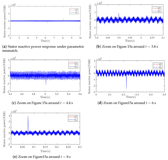 In this case study, the plant model was subject to parameter uncertainties and variations, which reflected realistic problems such as skin effect phenomena, magnetic saturation problem and wear due to ageing. To this end, the parameter variations were undertaken as shown in Table 4. An uncertainty of and on the mechanical system parameters was applied at time s and 5 s, respectively. Furthermore, a variation of and on the stator and rotor resistances and the mutual inductance was applied at time s and 8 s, respectively.