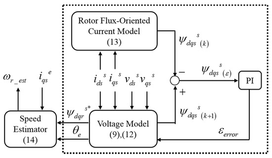 - Wang, G.; Xu, D.; Yu, Y.; Chen, W. Improved rotor flux estimation based on voltage model for sensorless field-oriented controlled induction motor drives. In Proceedings of the 2008 IEEE Power Electronics Specialists Conference, Rhodes, Greece, 15–19 June 2008; pp. 1887–1890. [Google Scholar] [CrossRef]