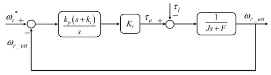 The control structure of the IM is shown in Figure 9 with the load torque, motor inertia and friction factors. All these parameters could affect the PI’s speed control response. Initially, the load torque was assumed to be zero. Therefore, the general closed-loop transfer function for the speed controller can be realized with the aid of the second-order system, as in [24], such that: