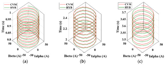 Alpha-beta stator current response: (a) at 1470 rpm, (b) at 500 rpm and (c) at 1000 rpm.