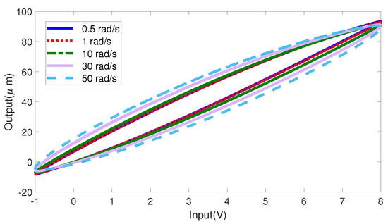 Hysteresis loops with five different sinusoid signal inputs of angular velocities from to .