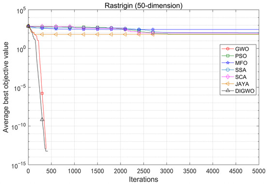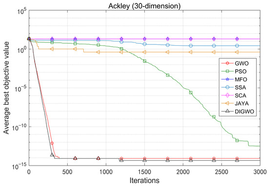 Figure 16 shows that DIGWO can converge to the theoretical optimum in the shortest time, which also verifies the efficient global search capability of DIGWO. In conclusion, the overall search performance of DIGWO based on the chaotic mapping strategy and adaptive convergence factor is effective.
