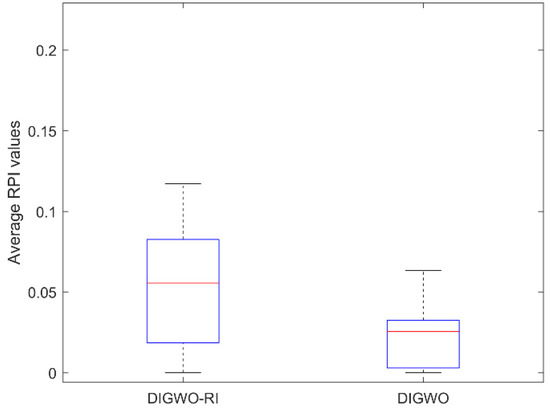 Section 3.3, this section includes the test of the two comparison algorithms, DIGWO-RI and DIGWO. It should be noted that the initial populations of DIGWO-RI are generated randomly. To ensure fairness during the experiments, the same components and all parameters were set identically, and the results after 20 independent runs are shown in