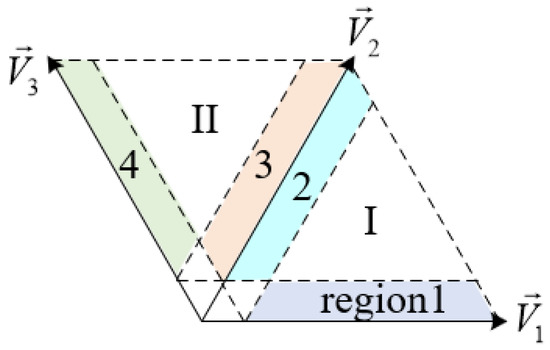 - When the target voltage vector is located near the sector boundary or in the low-modulation area, the duration of one or two active vectors is too short to sample the DC-link current [14]. In this paper, both the sector boundary and the low-modulation area are considered unmeasured areas.
