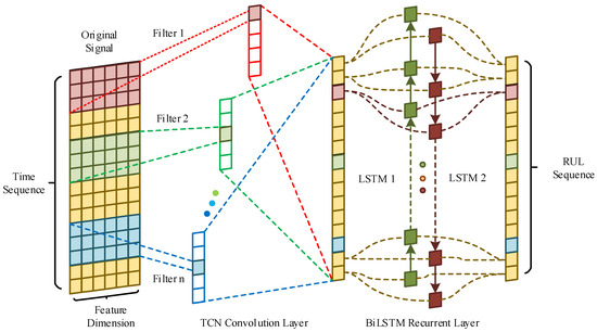 The main purpose of this section is to introduce the core idea of the TCN-BiLSTM model through theoretical analysis, how it is used as a prediction model to extract features from multidimensional data, and how to map training features to RUL in order to achieve RUL prediction.