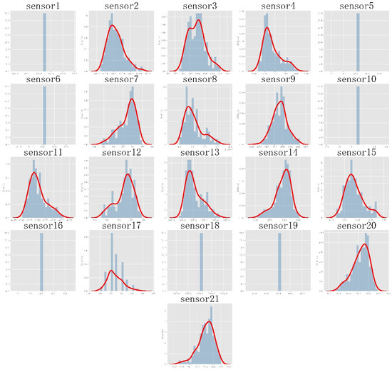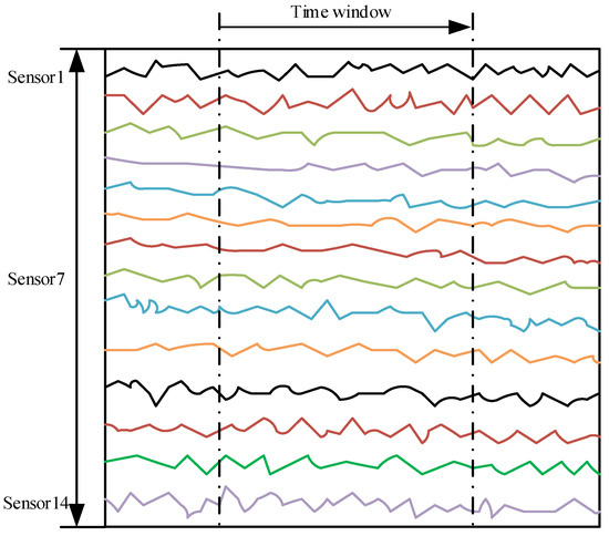As can be seen from Figure 6, sensor1, sensor5, sensor6, sensor10, sensor16, sensor18, sensor19, and other feature quantities are not sensitive to time series signals or are discrete variables, and they play a small role in feature engineering such as the construction of comprehensive health indicators. Therefore, the data generation of these sensors is of little significance, and these sensors are screened, and finally, the remaining 14-dimensional data (sensor2, sensor3, sensor4, sensor7, sensor8, sensor9, sensor11, sensor12, sensor13, sensor14, sensor15, and sensor17) with large changes are selected.