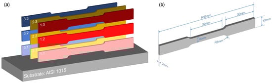 Three clearly differentiated zones were obtained in the specimens of each wall type and processing condition with respect to the conformation zone from which they were extracted: “X.1” is the closest to the AISI 1015 substrate, whereas “X.3” is the last layer to be deposited. “X” is related to postprocessing, as explained in the following subsection.