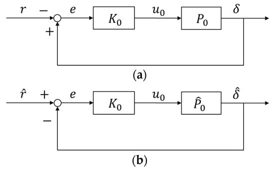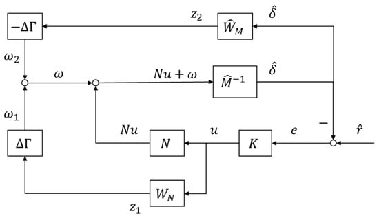 Therefore, in Figure 6a,b, the input and output of the nominal controller are identical. When is a PID controller, the gain of can be determined by Routh Criterion. In practical engineering, a group of appropriate gains can be selected within the range of stability conditions with the help of manual parameter tuning. Generally, the selected gain can make the system have good nominal performance. It means that under the control of the selected gain, the overshoot of the system is small, the response time is fast, and the stiffness is moderate.