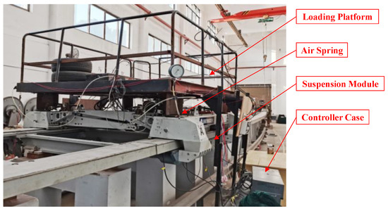The other one is the single bogie experimental platform of the suspension system, as shown in Figure 15, which shows a single bogie experimental platform of the maglev train whose structure and size are completely the same as the maglev train that runs in commercial lines. In the project, five single bogies carry a carriage of a maglev train. A single bogie test platform mainly includes a loading platform, an air spring, a suspension module and a controller. The parameters of the plant are based on the blueprint of the experimental platform, as shown in Table 2.