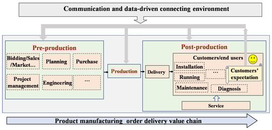 - Service issues: due to service having been considered a crucial factor in competitiveness in recent years, many enterprises must try to meet the requirements from customers. In particular, for the process of after-sales, such as installing, commissioning and maintenance on-site, service problems have existed for a long time, and in the normal mode are difficult to solve. For instance, the crane industry has suffered from timeliness, effectiveness, efficiency in after-sales service, such as delays, and declining productivity []. In particular, with an increased amount of customization and personalization, the demand for after-sales service or product maintenance has been increasing dramatically. Good service can provide more value-adding potential for enterprises; however, most enterprises lack effective service systems or appropriate service providers and support technology to meet the requirements through the normal mode.