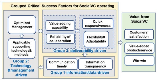 Regarding the performance measurement of the SocialVC system, the original intention of this research was to propose a new perspective on value-adding for enterprises/customers, so performance-focused attention is limited in this paper, although the authors propose a high-level performance measurement framework which is helpful in developing detailed multiple low level KPIs with calculations to measure and evaluate the SocialVC system in order to optimize the system and create more value-adding potential. Liu et al. paid attention to social factors in evaluation of the supply chain management system. From the perspective of preferred suppliers, they developed an SSSE indicator system that considered economic, environmental, and social factors, and the cloud probability dominance relations (PDR) method was used for the selection of the optimal sustainable supplier []. From the perspective of comprehensively evaluating the performance of the SocialVC, a bigger effort is still needed to develop detailed performance measures to evaluate the major business process across the SocialVC. Further research on the SocialVC system is needed on the behavior of involved participants, such as behaviors among enterprises, MSEM and individuals who are involved in value-adding activity in the SocialVC system as prosumers, as their behavior impacts both the efficiency of the delivery of the SocialVC system and the value-adding capacity for all involved participants.