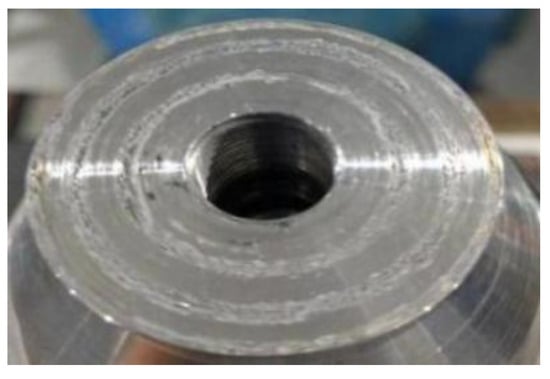 From the analysis of static performance parameters, it could be seen that for the assembly parameters of the junction surface at the ultrasonic horn, the change of preload torque had a greater impact on the static performance parameters of the acoustic vibration component. In comparison, the lubrication state had a smaller impact on them, but it could not be ignored. Under the same stable state, higher resonance frequency, slightly larger dynamic resistance and frequency bandwidth, and smaller quality factor could be obtained with lubrication between the junction surfaces. The junction surface between the ultrasonic horn and the transducer had large friction, which would cause corresponding wear, as shown in Figure 7, reducing its service life and reusability. Based on the analysis of the static performance parameters, to obtain relatively stable static performance parameters, the quality factor should not be too high. Additionally, the frequency bandwidth should not be too small, the preload torque should be 30–50 N·m, and lubricant should be added between the junction surfaces.
