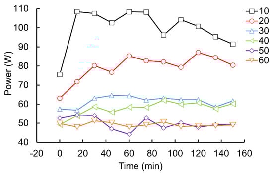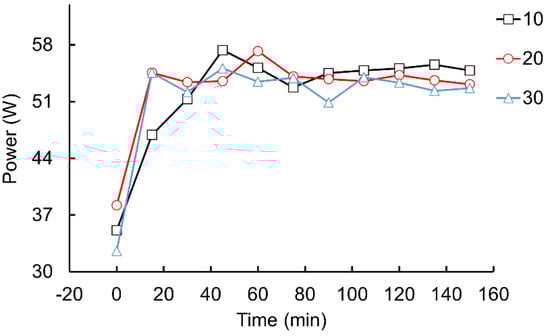 During the running time of 0–150 min, the dynamic performance parameter measurement system is used to measure the power data with different assembly preload torques of the junction surface at the ultrasonic horn.