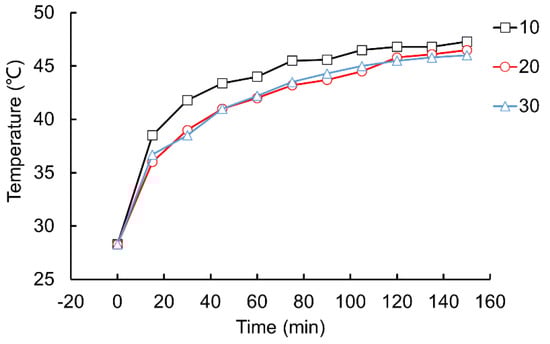 According to the experimental data, the influence of the preload torque of the junction surface at the straight-edge knife on the temperature of the acoustic vibration component is plotted, as shown in Figure 15.
