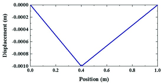 The initial displacement is shown in Figure 2. The initial displacement of string is reasonable and satisfies the boundary conditions of string. The initial conditions can produce free vibrations of all modes to verify the suppression performance of time-varying length on each mode.