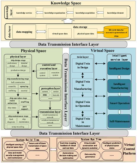 The physical space is a dynamic and complex real ship world that is the basis of the whole system, which includes the physical layer, the control and execution layer, the perception layer, and the transmission layer.