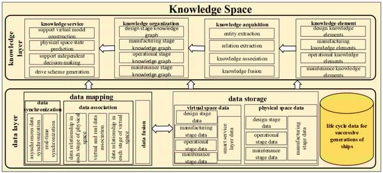 The knowledge space is the brain of the system, enabling the storage and processing of data in both physical and virtual space. The knowledge space consists of the data layer and the knowledge layer, as shown in Figure 4.