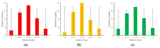 The measurement results were analyzed to obtain the frequency distribution of the dimensional intervals in each direction, as shown in Figure 3.