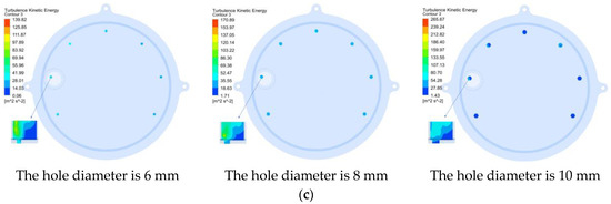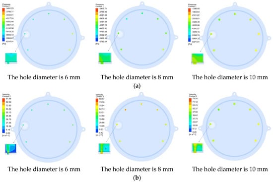 Therefore, the design of the hole diameter to ensure that the pressure is not too large premises a moderate reduction in the diameter of the hole. This paper designs three types of hole diameters, which are 6 mm, 8 mm and 10 mm. In the following section, fluent simulation tests are conducted for the diameters of three holes to take the optimal hole diameter. The numeric selection is shown in Table 1.