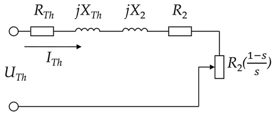 As is shown in Equations (10) and (11), and Figure 2, the motor torque and the input power are rather complicated with the T-circuit because of its two serial–parallel branches. Thevenin approach can be used to establish the speed model and it is shown in Figure 3.