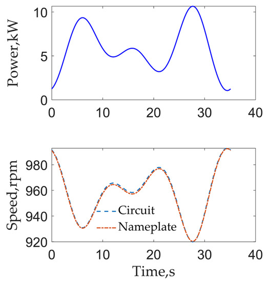 Thus, the motor speed can be calculated based on the input power when the parameters of PMm, Sm, and σ are given. There are two methods to determine these parameters. One is to calculate it based on Equations (21) and (24) according to the circuit parameters, the other is according to the nameplate parameters. The nameplate parameters include the rated power PH, rated slide SH, rated efficiency ηH, and maximum torque ratio λk. It has