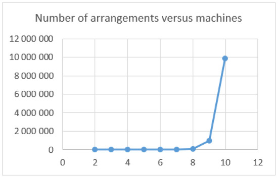 Relation between the number of machines and the number of sets of arrangements of machines to order.