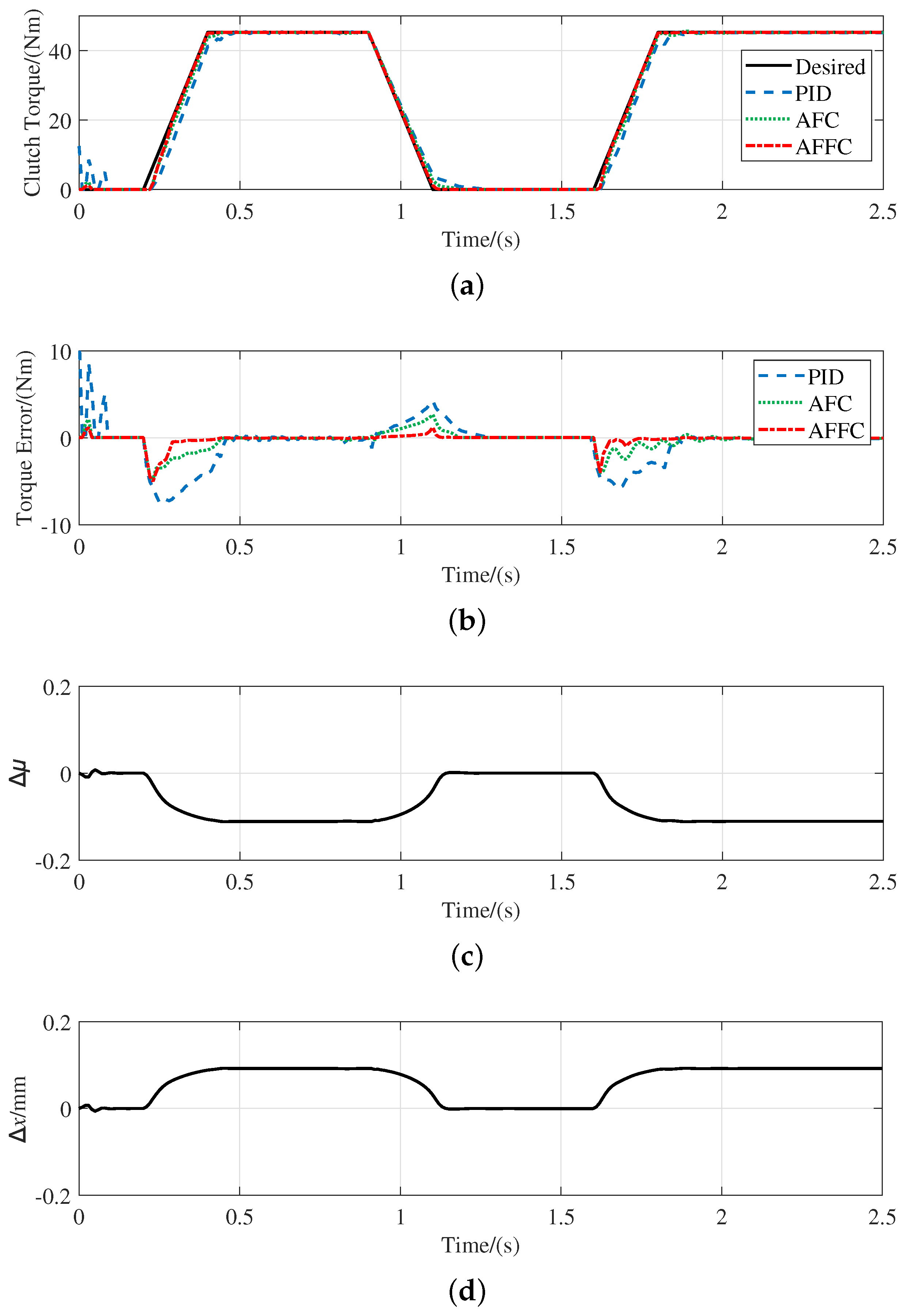 - The torque loop controller can adaptively control according to different time-varying parameters of the clutch, integrates the advantages of feedforward and feedback control and has fast response speed, high accuracy and strong robustness.