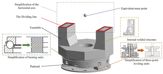 Considering that the results of the modal test are primarily dependent on the vertical axis system and that the model in this paper focuses on the lower modes of the tracking frame, the simplification process is described as follows: