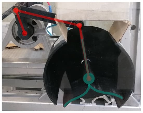 Exploiting the movement of the mechanism, if the crank link rotates with a fixed speed the blades rotate periodically to the left and to the right, allowing the components to fall within one compartment or the other (an example can be seen in Figure 2). This allows the machine to be controlled by a very simple control system.
