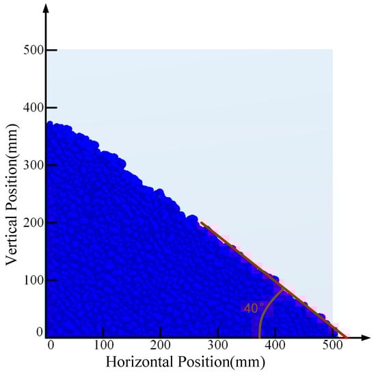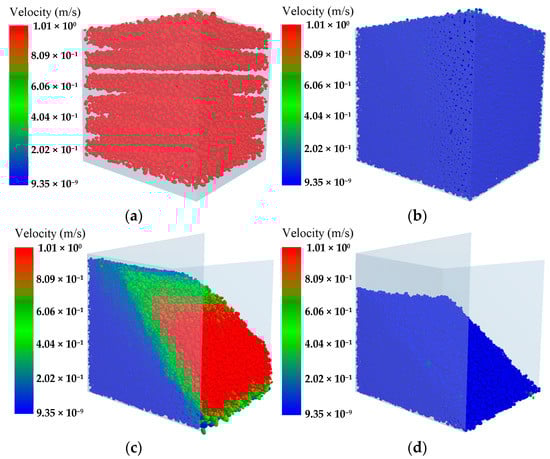 The simulation process of the natural accumulation surface of the materials: (a) Material filling process; (b) Material stabilization process; (c) Free slipping process; (d) Material stops slipping.