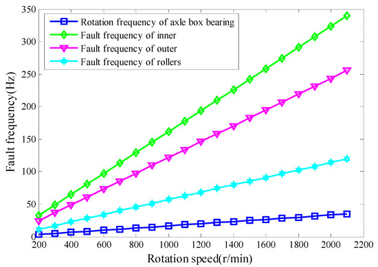 Figure 3. Failure characteristic frequency of axle box bearings at different rotational speeds.
