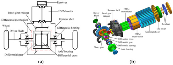 Drive system of a CEV with an FSPM motor. (a) Schematic diagram; (b) assembly structure.