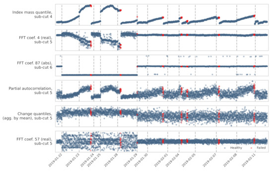 - Christ, M.; Braun, N.; Neuffer, J.; Kempa-Liehr, A.W. Time series feature extraction on basis of scalable hypothesis tests (tsfresh—A python package). Neurocomputing 2018, 307, 72–77. [Google Scholar] [CrossRef]