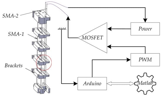 In addition to the rigid-flexible conversion, the actuator position can also be controlled directly and precisely. Wang et al. [44,45] equated the end-effector for grasping fruits and vegetables to a second-order impedance first-order conductance model. The end-effector gripping force impedance control strategy is shown in Figure 2. The control algorithm is highly adaptable to the uncertainty and force perturbation of the object model, and can quickly control the gripping force with a low overshoot to achieve flexible robot grasping. The structural design and control system of the end-effector was studied by Cheng et al. [46] for a small underwater double-arm manipulator. It uses a pushrod telescoping and linkage self-locking mechanism to realize the opening and closing function of the gripper jaws. The control system adopts two-level control above and below water, and PID control is performed by smoothing the joint module with multiple interpolation so that the manipulator has better motion and basically realizes the function of the control system. Li et al. [47] proposed a method for precise position control of a soft robot based on a fuzzy time lag algorithm. As shown in Figure 3, the SMA wires of different materials are embedded in the structure of the soft robot, and the basic mechanism of the variable stiffness of this actuator relies on SMA filaments. Finally, they proved that the method is a feasible SMA actuator position control method.