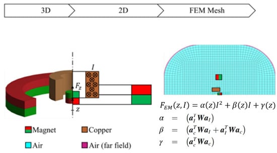 The catch actuator’s design. Where, a is the vector of magnetic vector potential; W is a body-dependent weighting matrix.