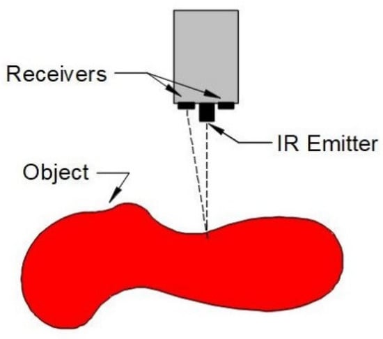 Most developed applications of fabric-handling robots include visual sensors. Visual sensors can be separated into various categories based on their working principle and their goal. The most fundamental classification is binary vs. non-binary sensors. Binary sensors can produce only two values as output: logic “0” and logic “1”. These sensors are only used to detect the presence of an object. A popular application of binary visual sensors is infrared sensors [22,23,24] (Figure 1), although other types of are available, such as fiber-optic [25,26,27] or optoelectronic sensors [28]. In [29] two sensors working as 1D cameras were used as edge sensors, measuring the light of every pixel.