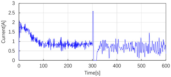 Compared to the detection time in simulation, the experimental parameters for the setup were the same as the simulation parameters under one case study. The initial temperature was about 20 °C. The experimental tests are presented in Figure 11, Figure 12 and Figure 13. In Figure 11, and indicate the fault signals of the aluminum plate sensor and the tube sensor in the upper picture, respectively, when the fault signals of and rise 4 °C in 300 s and 450 s, respectively. In the middle picture, the multiple sensor faults can be detected within 5 s. The output of FDI in the bottom of Figure 11 shows a good tracking performance under the faulty conditions. It is demonstrated that the proposed approach is flexible and effective to deal with the sensor faults. The temperature curves of the tube and aluminum plate are shown in Figure 12, while the input current is presented in Figure 13. The experiment results confirm that the tracking performance is improved by the proposed control system.