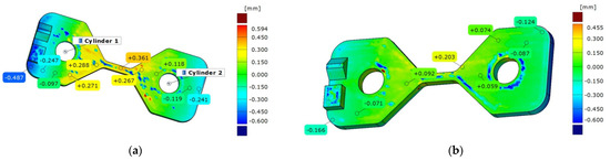 Surface comparison on CAD. (a) severe part warping, (b) mild part warping.