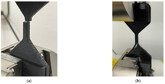 Tensile strength measurements are performed on an Instron 3366 [20] tensile tester (Figure 4b). The data provided by these measurements can be used to model the mechanical behaviour of the manufactured parts, which can then be used to create an orthotropic material profile for CAD systems that can inform decisions of layer orientation and feature dimensions in the design stage, as well as provide data for the training of an ANN that can predict the mechanical behaviour of a part. The tests are performed on all test parts, and the results are plotted for pairs representing the horizontal and the vertical orientations for each combination of parameters, providing a comparative study of tensile strength for the different orientations used.