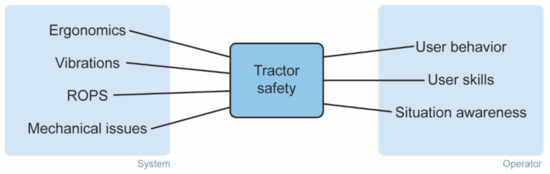 Most of the injuries related to agricultural activities are connected to the use of agricultural tractors [37,38]. The latter is attributed to the following reasons: (1) the large number of small farms lacking expert equipment and operators, (2) the wide range of agricultural tasks in need of machinery contribution, (3) the engagement of the same operators for all the different tasks, which require both the adaptation of different tools to the tractors and different handling, (4) the seasonal work associated with changes in the field per season in addition to the constant alteration of workspaces that do not allow the user to get acquainted with the environment, (5) the use of outdated machinery not complying with safety regulations and (6) the use of obsolete sensors that have not been updated to their more recent improved versions with better technical specifications and performance.