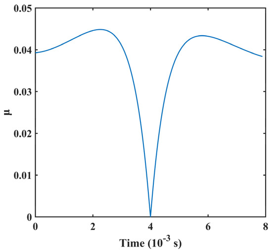 The friction coefficient is related to relative sliding velocity, tooth surface roughness, contact pressure, lubrication situation, etc. Hence, it is particularly difficult to predict the friction coefficient value. The tooth friction model mainly includes the Coulomb friction model, Buckingham empirical formula, Benedict Kelly model, and the friction model based on Elastohydrodynamic lubrication (EHL) theory. Among these, the friction model proposed by Xu [31] reasonably agrees with the measured data, so it is usually adopted to predict the friction coefficient in this paper. It is based on non-Newtonian, thermal EHL theory, and multiple linear regression analysis. The friction coefficient calculation results are shown in Figure 9.