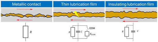 Electrically equivalent circuit diagrams of a rolling contact depending on the lubrication condition. (Adapted with permission from ref. []).