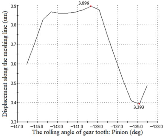 Factual data can be found in the Romax software, torque N·m; indexing circle diameter mm; end face pressure angle ; meshing stiffness N/(mm·µm); machining base pitch error µm. It can be calculated that the maximum value of the pinion tooth profile modification amount is 11.60 µm.