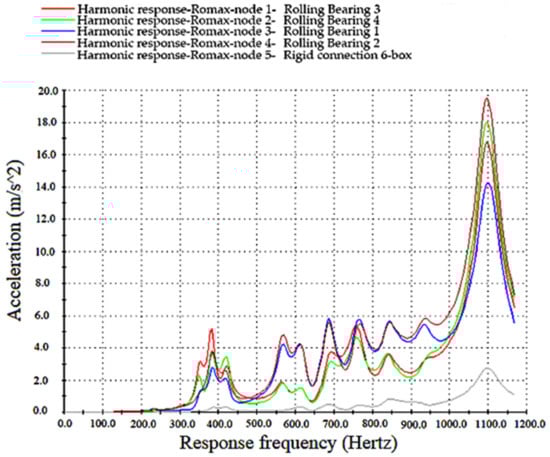 Figure 7 shows the characteristics of each node of the system under the response frequency curve. The obtained results are saved in file format, which can be used as the excitation conditions of the forced vibration response of the gearbox in the subsequent acoustic simulation analysis to obtain the surface vibration response data of the gearbox. It provides boundary conditions for boundary element analysis.