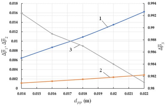 When determining the mass flows of the attached (dMni) and detached (dM0i) through the gas distribution bodies, the San Venant–Wanzel equation was used for a one-dimensional isentropic flow in a quasi-stationary setting. Changing working chamber dVg was limited by a change in the volume in the pumping section of stage 1 in the absence of dropping liquid compressibility.